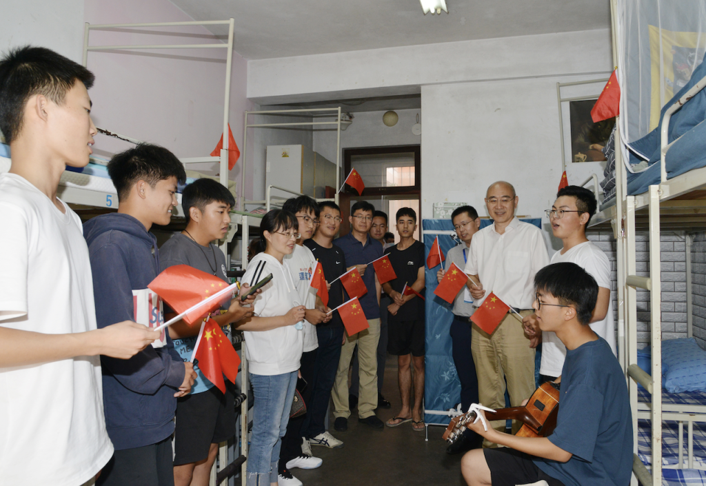 德赢vwin体育官网登录校长陈克正受邀参加了新生宿舍的主题团日活动,在崂山校区南5号楼105宿舍,同学们弹奏起吉他,和陈克正校长及其他部门老师共同歌唱《我和我的祖国》;在107宿舍,大家共同观看了央视《中国梦·祖国颂—2021国庆特别节目》,铭记红色历史,赓续红色血脉。陈克正详细了解了秋季学期开学以来同学们在校的学习、生活情况,肯定了同学们积极加入体育协会,在体育锻炼中享受乐趣、增强体质、健全人格、锤炼意志,他嘱咐同学们要厚植爱国情、砥砺强国志。陈克正表示,“要培养德智体美劳全面发展的社会主义建设者和接班人,就要始终牢记为党育人,为国育才的初心使命,切实把同学们的日常生活丰富起来,积极推动体育改革进程,引领青年学子立大志、明大德、成大才、担大任,深入践行‘请党放心、强国有我’的铿锵誓言,为实现中华民族伟大复兴作出科大学子应有的贡献。”