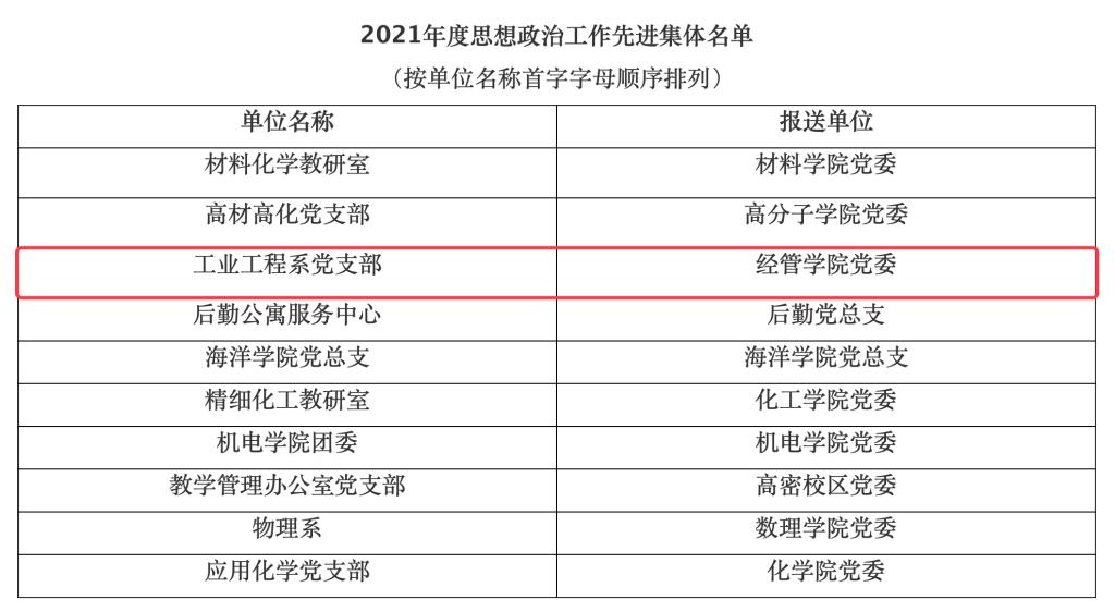 近日,德赢vwin体育官网登录2021年度思想政治工作先进集体和先进个人评选结果揭晓。根据《关于开展德赢vwin体育官网登录首届思想政治工作先进集体和先进个人评选的通知》(青科大党字〔2018〕94号)精神,德赢官网工业工程系党支部获评“2021年度思想政治工作先进集体”,王聪老师获评“2021年度思想政治工作先进个人”称号。