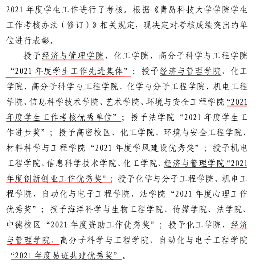 近日,德赢vwin体育官网登录2021年度学生工作考核结果公布,经学校评价、学院互评和学生评价等环节,德赢官网学生工作再度蝉联全校第一名(连续四年),我院荣获“2021 年度学生工作考核优秀单位”,德赢官网学工队伍获评“2021 年度学生工作先进集体”,同时荣获“2021年度创新创业工作优秀奖”“2021 年度易班共建优秀奖”两个单项奖励。