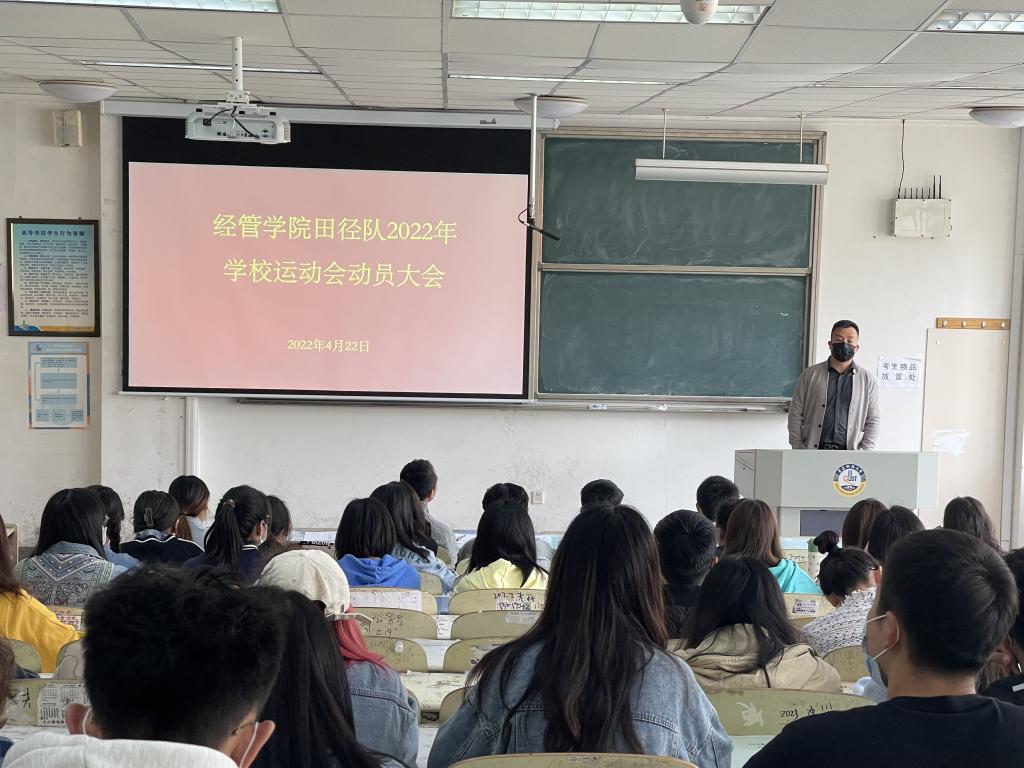 为积极响应学校综合体育改革号召,全方位铺开校运动会筹备工作,4月20日晚,经管学院组织召开校运会筹备推进会议,4月22日中午,经管学院召开校运会动员会。学院学工办副主任、团委副书记张显全,学院体育联盟指导老师高守朋,学生会指导老师孙一君、2020级辅导员付凯、2021级辅导员张鸣、学生会骨干成员及全体运动员参加会议。