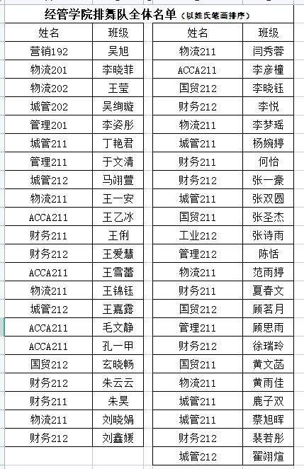 附经管学院排舞队全体名单: