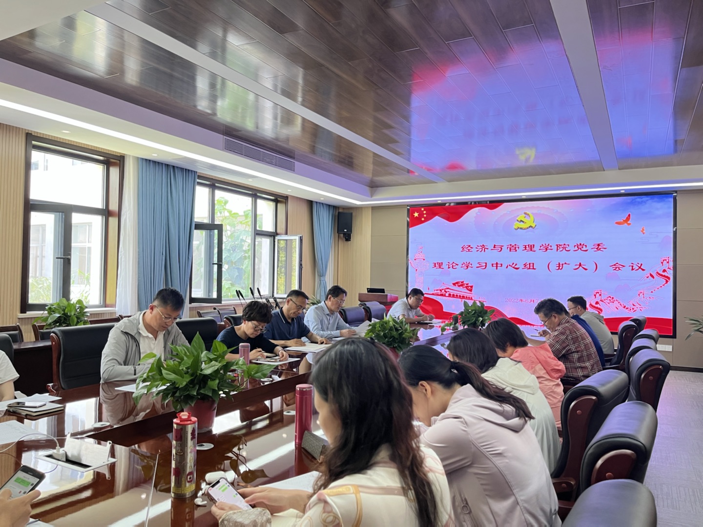 6月7日下午,经管学院党委组织领导班子成员、全体党支部书记于经管楼313会议室组织召开集体培训,并讲授专题党课。会议由党委书记李德成主持。