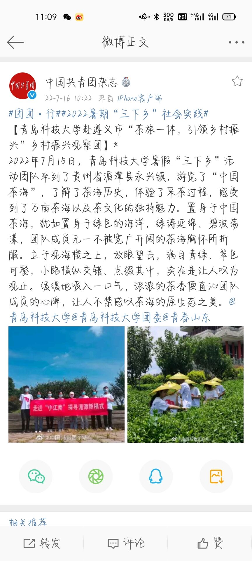 青科学子三下乡:岚荡茶园横半岭,学思践悟正当时https://c.m.163.com/news/a/HCFE1Q1T0552HSTO.html?spss=newsapp&spsnuid=W8ZgPTGCAYvFQw%2B5yO9YJtCK977CmVx60eCfChwPRdg%3D&spsdevid=CQk5NmI3MjRmY2NjNzM3MDY4CXVua25vd24%253D&spsvid=NTEyNTQ0ZjZkYmVkOTE3ZA%253D%253D&spsshare=wx&spsts=1658019288198&spstoken=A92PIRolBkiQtHWfRu0HI46fzJhd%2FMOwvwvYEoEES2XCqVVq7xuab%2FEg0laY7Is7Qb%2Fa9tP2Hd0m%2BaWjfSU8Xg%3D%3D