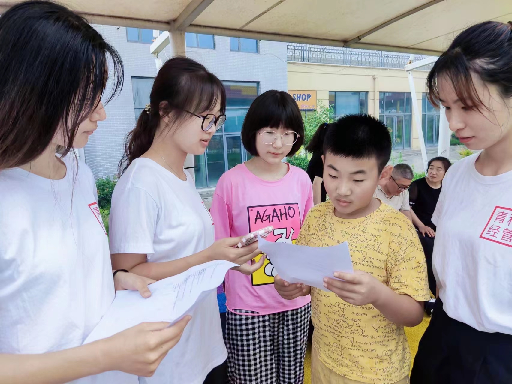 为积极响应国家政策,大力推广普通话的发展,让普通话走进每家每户,7月15日,德赢vwin体育官网登录经管学院赴潍坊市诸城市推普社会实践志愿服务团走进山东省潍坊市诸城市金查理小镇,深入了解了当地普通话发展情况,助力推动普通话发展。