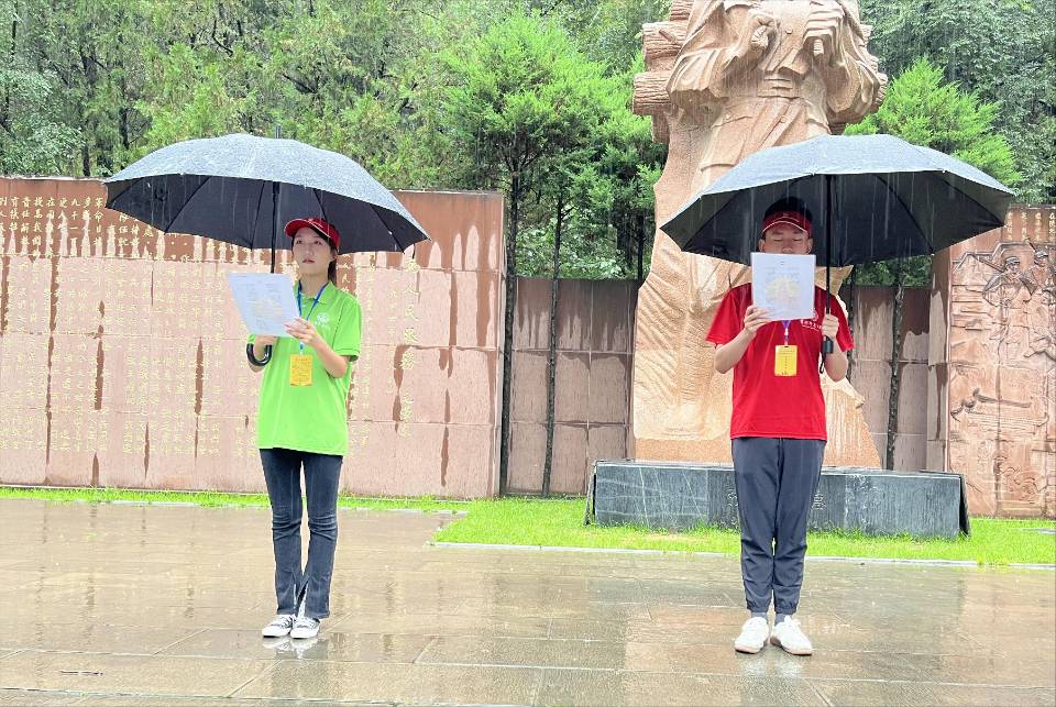 2022年盛夏,德赢vwin体育官网登录赴延安“时代印记”红色旅游经济调研团赶往延安,与全国各地兄弟院校共赴一场红色的约定。7月22日,蒙蒙细雨之中,学员齐聚《为人民服务》讲话纪念广场,我非常荣幸能够在本次活动中担任领诵员,带领全体实践团学员“红色讲台”前齐整列队、高声诵读毛主席在张思德同志追悼会上发表的文章——《为人民服务》。党的百年历史,就是党与人民心连心、同呼吸、共命运的历史。而“为人民服务”像一根红线贯穿我们党近百年的历史,激励着一代又一代中国共产党人前赴后继、英勇奋斗。