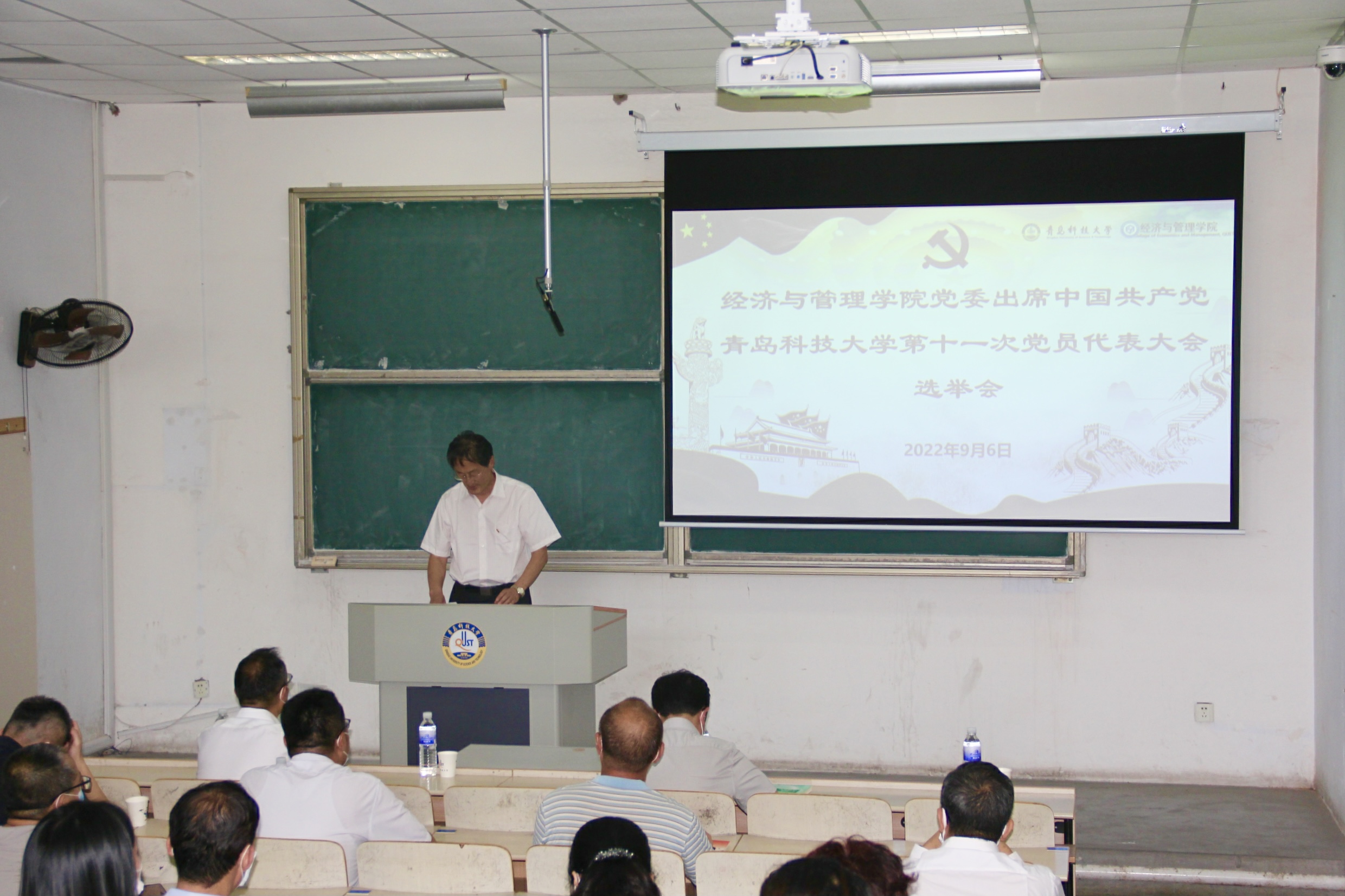 9月6日下午,经管学院党委于弘毅楼E区302教室召开全体党员大会,选举产生出席学校第十一次党代会代表。校党委书记李兴伟出席会议。
