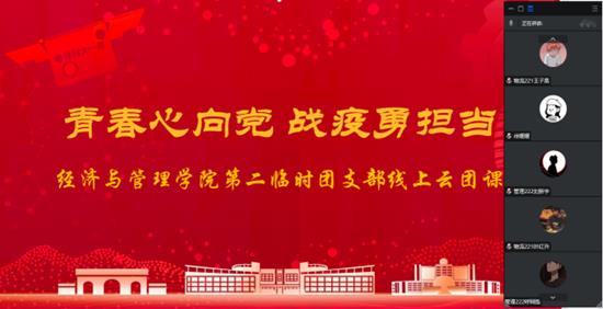 为进一步学习贯彻党的二十大精神和德赢vwin体育官网登录第十一次党代会精神,做好学生思想教育工作,经管学院战疫第一、第二临时团支部分别开展以“永远跟党走 同心战疫情”、“青春心向党 战疫勇担当”为主题的线上学习会和主题云团课活动,引导青年学子在理论学习中汲取智慧力量,帮助隔离学子激发爱党爱国爱社会主义的真挚情感。