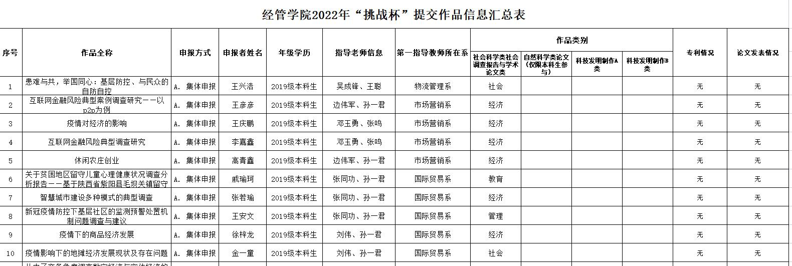为深入贯彻落实党的二十大精神,进一步引导广大同学努力培养科学精神和科学态度,积极学习科学知识和科学方法,促进科技自立自强,踊跃投身社会调查、学术研究、科研攻关实践第一线,为加快建设科技强国贡献青春力量,经管学院积极组织“挑战杯”大学生创新创业大赛选拔赛申报工作。