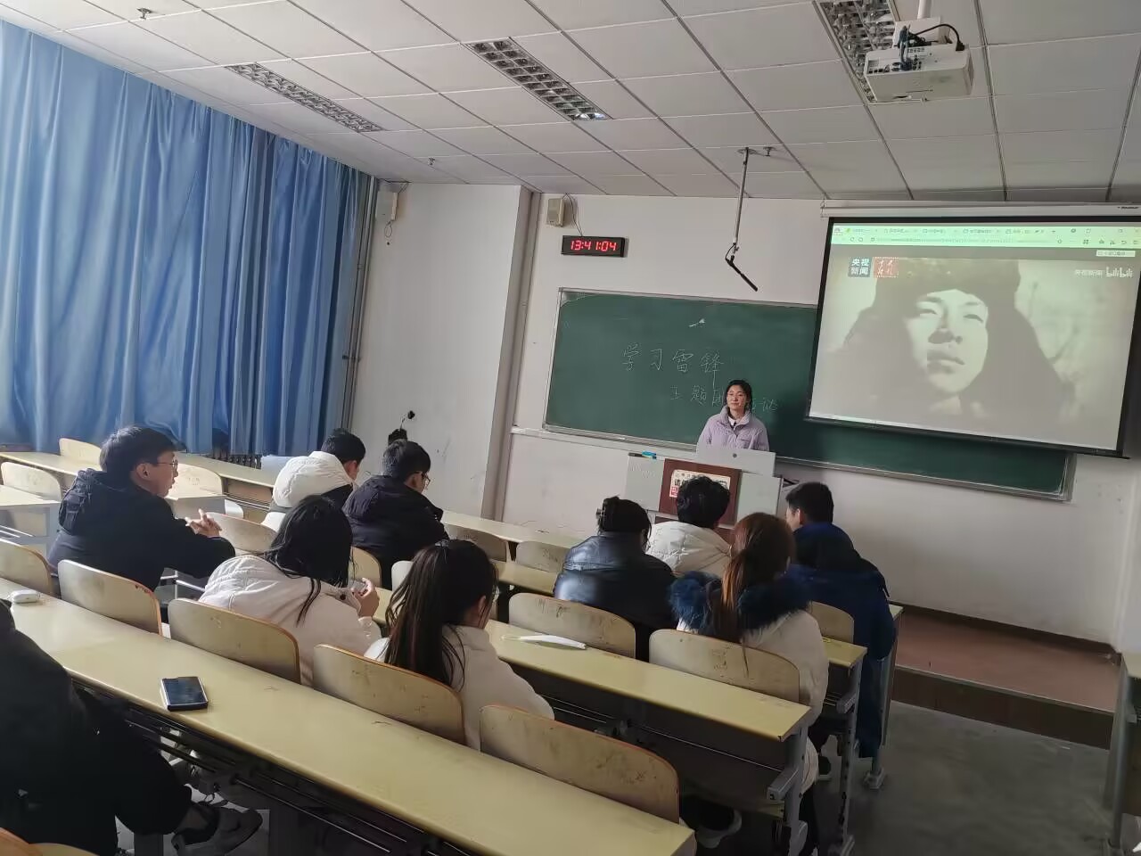 主题教育会开始,同学们观看并学习雷锋精神视频,感受到了雷锋同志争取先进的信心和毅力,主持人结合视频向同学们介绍雷锋的生平、精神和事迹,鼓励同学们雷锋同志学习、向雷锋同志致敬。