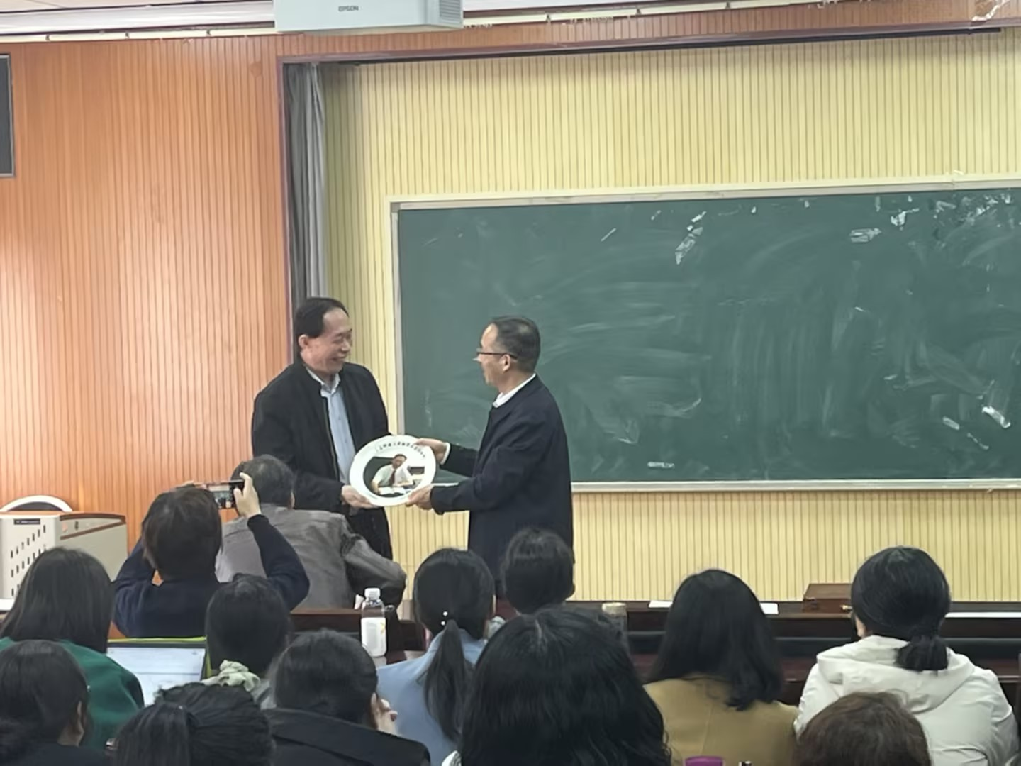 为弘扬人民教师教书育人的高尚品格感谢老教师一直以来的辛勤付出,学院工会为本年度退休教师定做象征荣誉的纪念品。荣休仪式上,李勋来院长代表学院向为学院发展做出贡献、付出辛勤汗水的王志宪教授表示了感谢和敬意并颁发了纪念品。