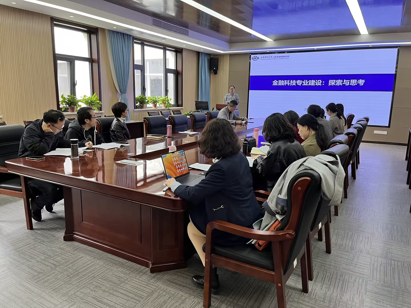 冯林教授对金融科技专业的概述、建设现状和面临的问题与应对策略为老师们做详细阐述,全方位讲解金融科技人才培养解决方案,金融科技专业申报过程、培养目标、培养要求、课程设置、培养方案制定、新课程开发等内容都为学院新专业的设立提供宝贵经验。杨继梅老师就德赢官网金融科技本科专业的申报情况进行了汇报,冯教授与学院各专业负责人就申报内容进行交流和讨论。