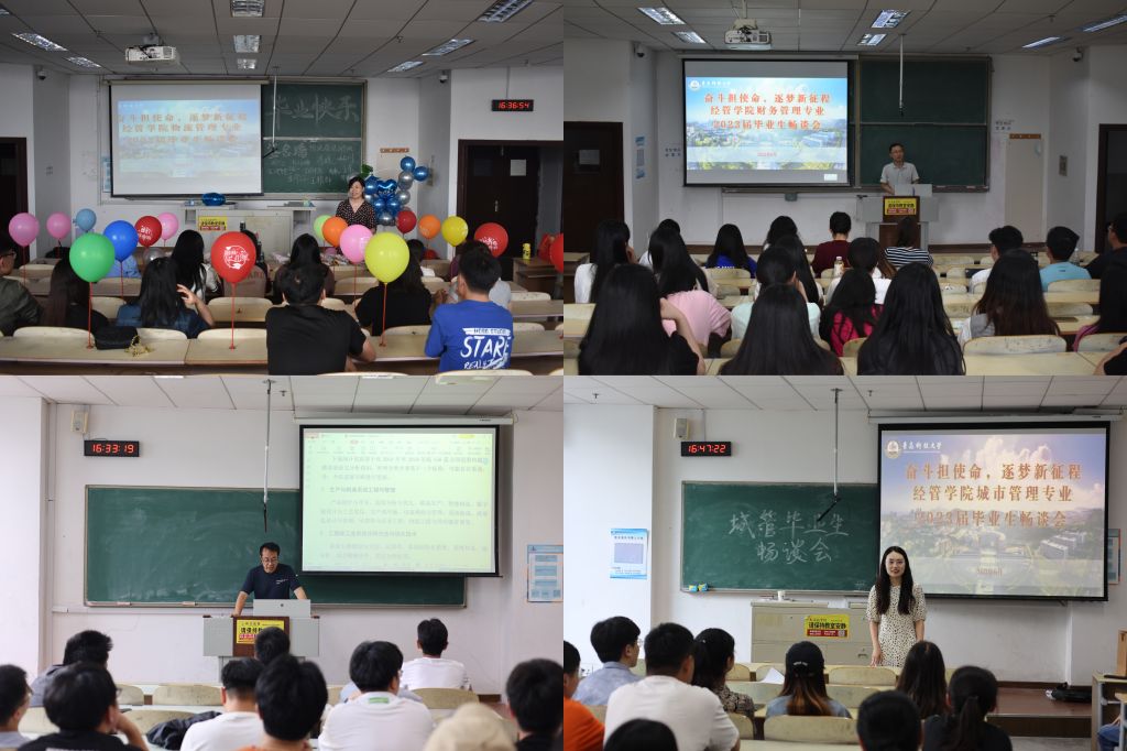 为扎实推进学习贯彻习近平新时代中国特色社会主义思想主题教育同实际工作紧密结合,为广大毕业生在离校前创造交流的机会和平台,近日,经管学院分专业召开“奋斗担使命,逐梦新征程”2023届毕业生畅谈会。学院领导、各专业导师(班主任)、毕业班辅导员及全体2023届毕业生共聚一堂,开展面对面的交流与沟通。