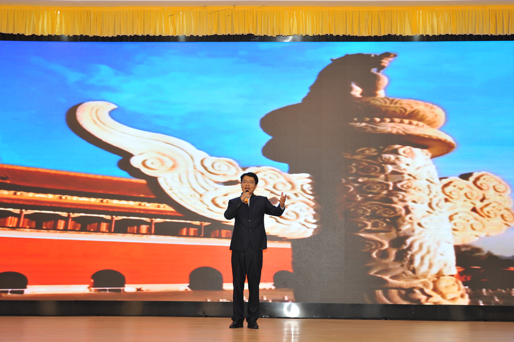 在声画影音中,一个个直击人心的故事跃然屏上、生动再现:陈毅元帅的革命精神和家国情怀在新时代绽放璀璨光芒;李大钊以不朽之“青春”浇筑出共产党人的理想与信念;陈延年、陈乔年为了革命事业鞠躬尽瘁、死而后已;焦裕禄把一生献给了党和人民;袁隆平直到生命最后一刻仍在奋力燃烧自己、烛照后学;黄文秀将最美年华无私奉献给了脱贫事业……在娓娓道来的宣讲中、感人肺腑的影片中、悠扬奋进的音乐中,沉浸式场景引起现场师生的强烈共鸣。