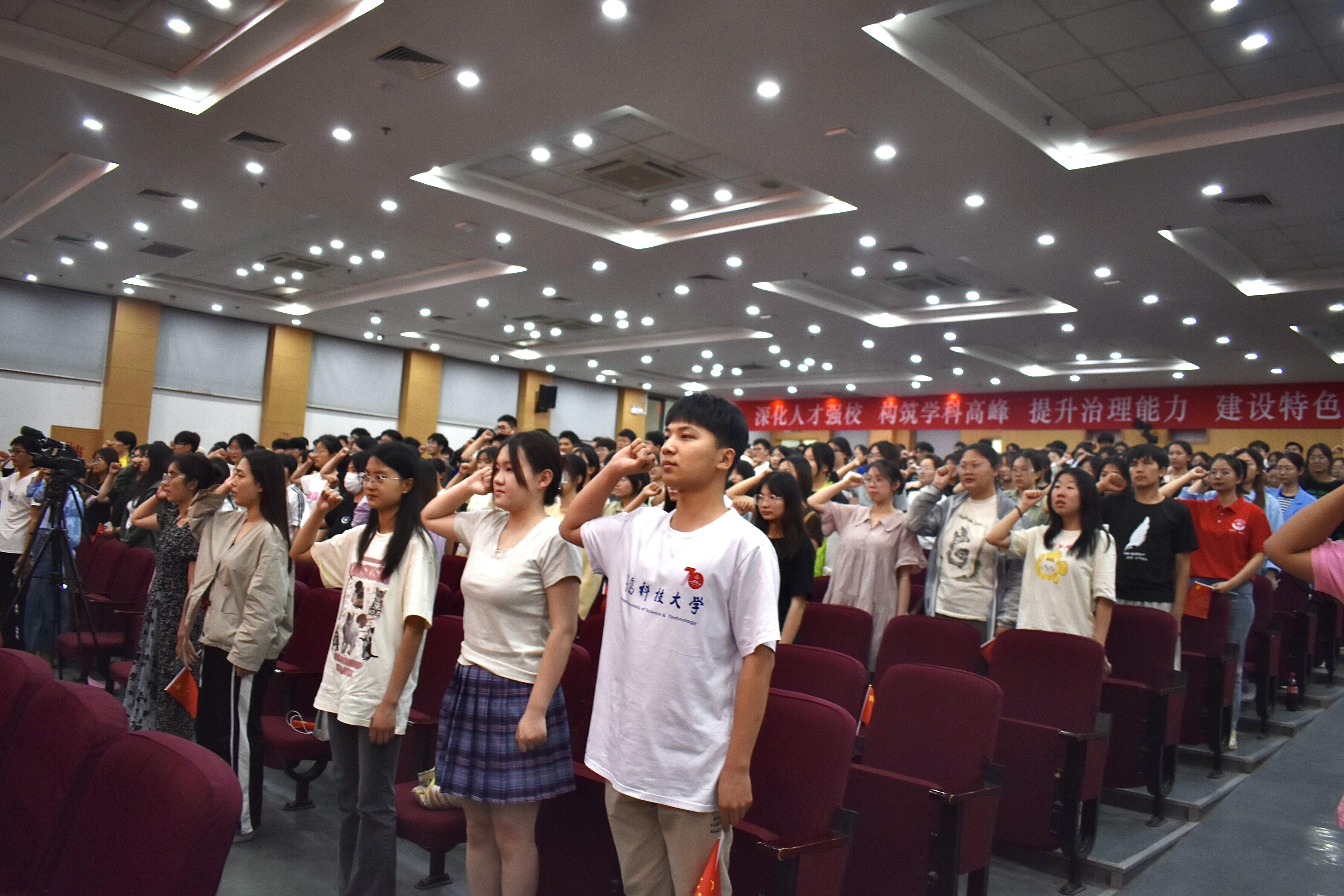 思政课最后,与会师生共同挥舞国旗齐唱《年轻的战场》,既唱出了壮志豪情,也唱出了青春热血,唱响奋斗有我的时代号角。“百年传承,今日到我;激荡未来,壮志在我;青春万岁,强国有我!”铮铮誓言,铿锵有力,振奋人心,催人奋进,2023届毕业生思政课在集体宣誓中落下帷幕。