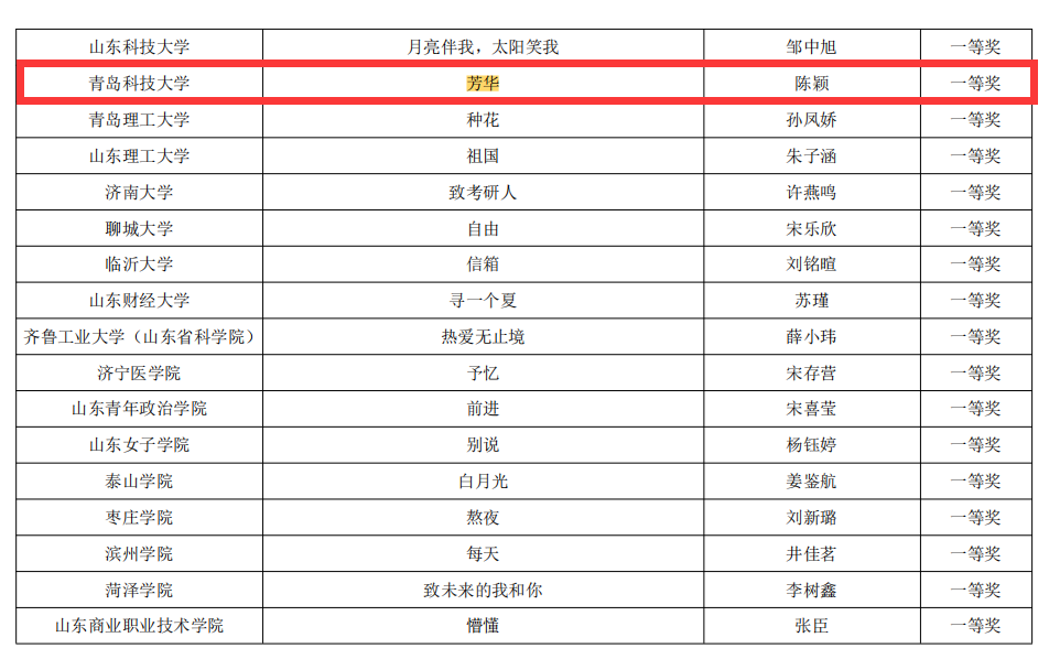 近日,山东省高等学校思想政治教育研究会、大学生心理健康教育专业委员会公布了2023年山东省高校心理健康教育月评选展示活动结果。经过专家评审,我校获一等奖4项、二等奖1项和三等奖1项,获奖质量再创新高,其中,经管学院财务管理221班学生陈颖的作品《芳华》获得“致可爱的我和你”三行诗作品一等奖。