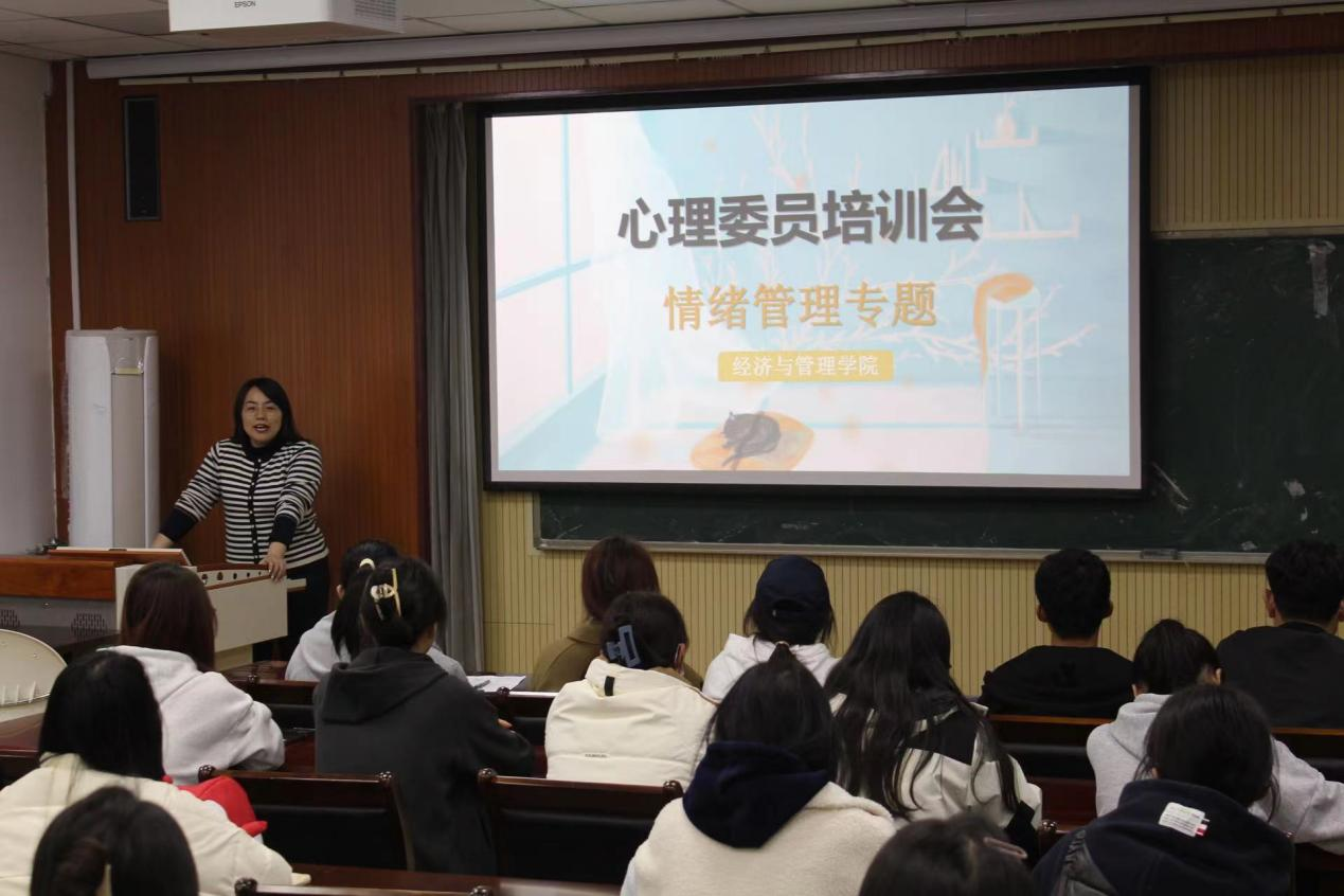 为全面推进素质教育,促进心理健康知识的广泛宣传,提高学生心理调节能力,同时拓展心理健康教育工作的途径,切实提升心理委员工作水平及工作能力,有效搭建班级心理防护体系,11月21日晚,经管学院于经管楼419室成功举办情绪管理专题培训会,此次培训会由学院心理工作站站长付凯主讲,本硕大一、大二班级心理委员、院学生会权益部全体成员积极参与此次专题学习。