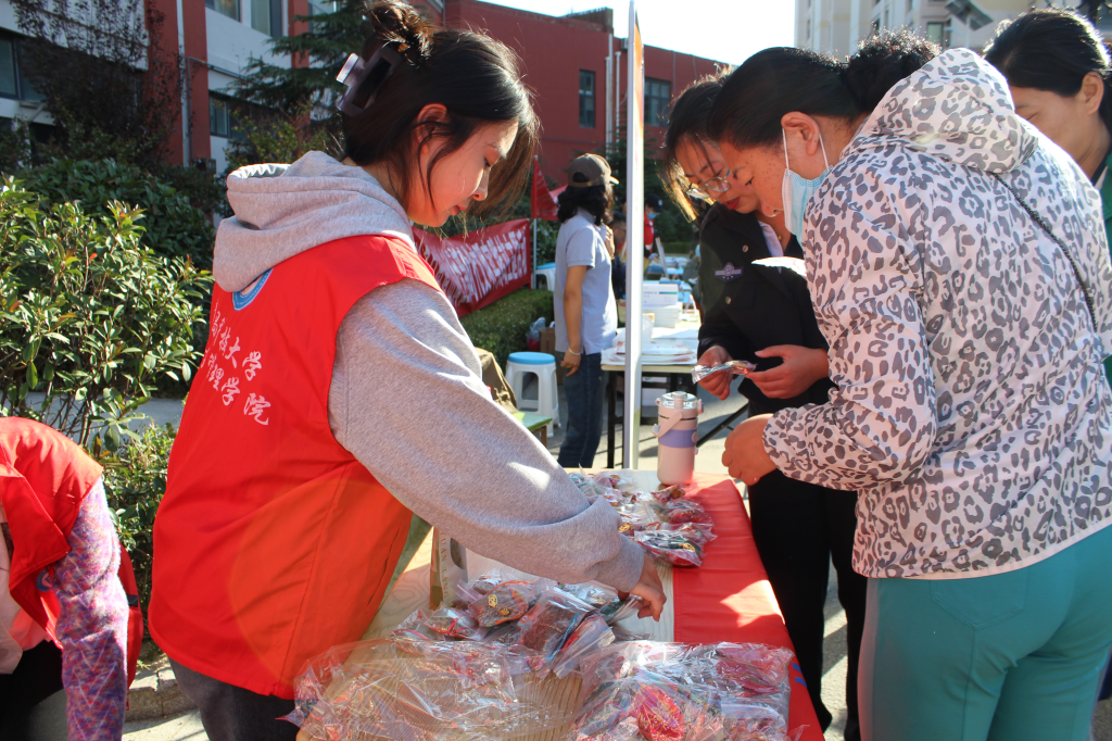 为了弘扬尊老敬老助老的传统美德,关爱老人群体,情暖夕阳,贡献青春力量,书写青年担当,10月21日上午,经管学院暖心愿爱心公益协会在沙子口街道山海社区开展了“百万大学生进社区”实践项目“爱汇社区”专项行动。此次活动旨在增强青年人的社会责任感和使命感,同时厚植爱心情怀,培植奉献精神,传递关爱老人的社会风尚,真正做到让老人老有所依,老有所乐。学院党委副书记兼副院长牛宝卫出席活动,社团指导老师付凯全程带队。