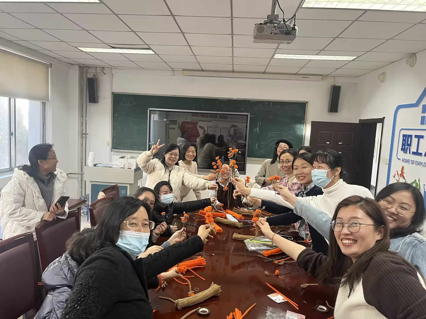 活动现场,院工会为参加活动的每位女教师精心准备了手工材料和相关配件。在温馨欢乐的氛围中,一根根小小的扭扭棒,通过弯折、缠绕、固定、胶装等一道道工序,在大家手里变成了一朵朵栩栩如生的美丽的花朵,看着自己亲手制作的“柿柿如意”花朵成品,大家脸上都露出了满意的笑容,享受着成功的喜悦。活动过程中,大家相互交流协作,现场气氛十分热烈。