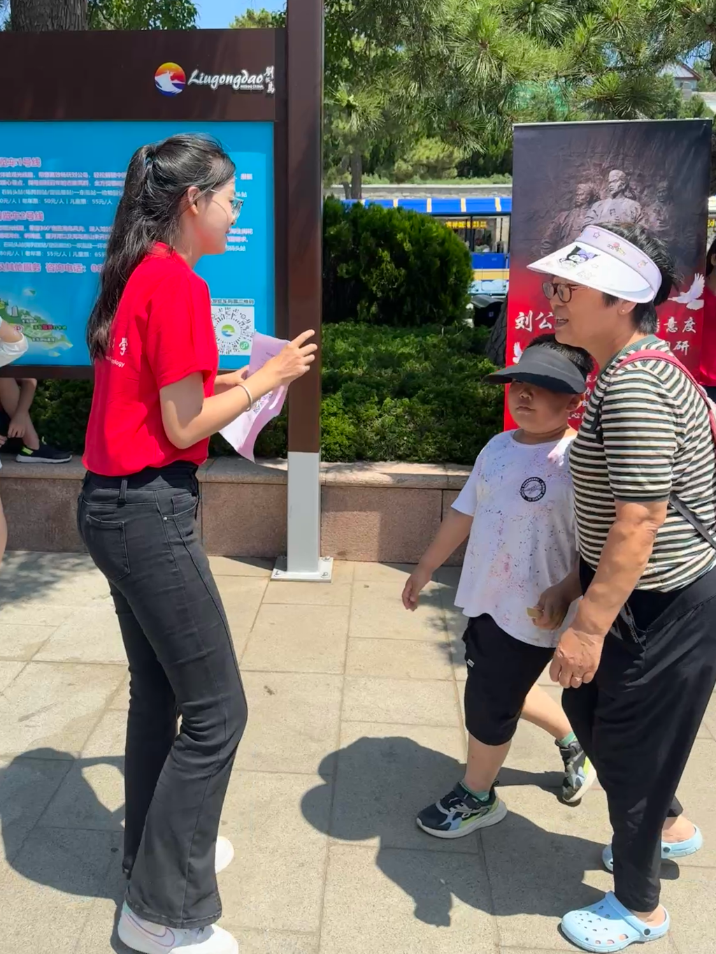 为进一步丰富实践成果,实践团成员结合自身专业特长,立足刘公岛“红色研学+文创消费”主题主线,围绕“优化红旅体验、深化研学产品、智慧导览升级、非遗活化路径”等调研内容,在景区流量点放置可视化的扫码易拉宝和意见收集箱,结合现场发放调查问卷的形式,探索红色资源赋能文旅消费的实践路径。