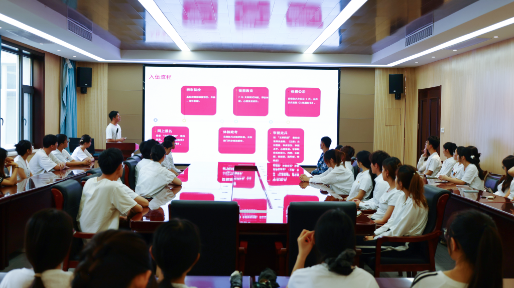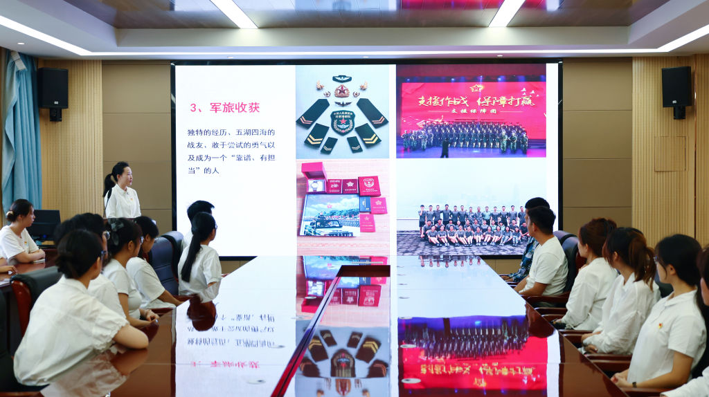 退役士兵党员代表李天寅从自身服役经历出发,详细解读了大学生征兵政策,重点介绍了经济补助、学业保障、考研升学等优惠政策,并现场解答学生疑问。分享过程中,李天寅还讲述了自己在部队锻炼成长的经历,阐述军旅生涯对个人意志品质、组织纪律观念和综合素质能力的深刻塑造,他鼓励同学们携笔从戎、参军报国,在军营延续党员先锋精神,用热血彰显报国情怀。