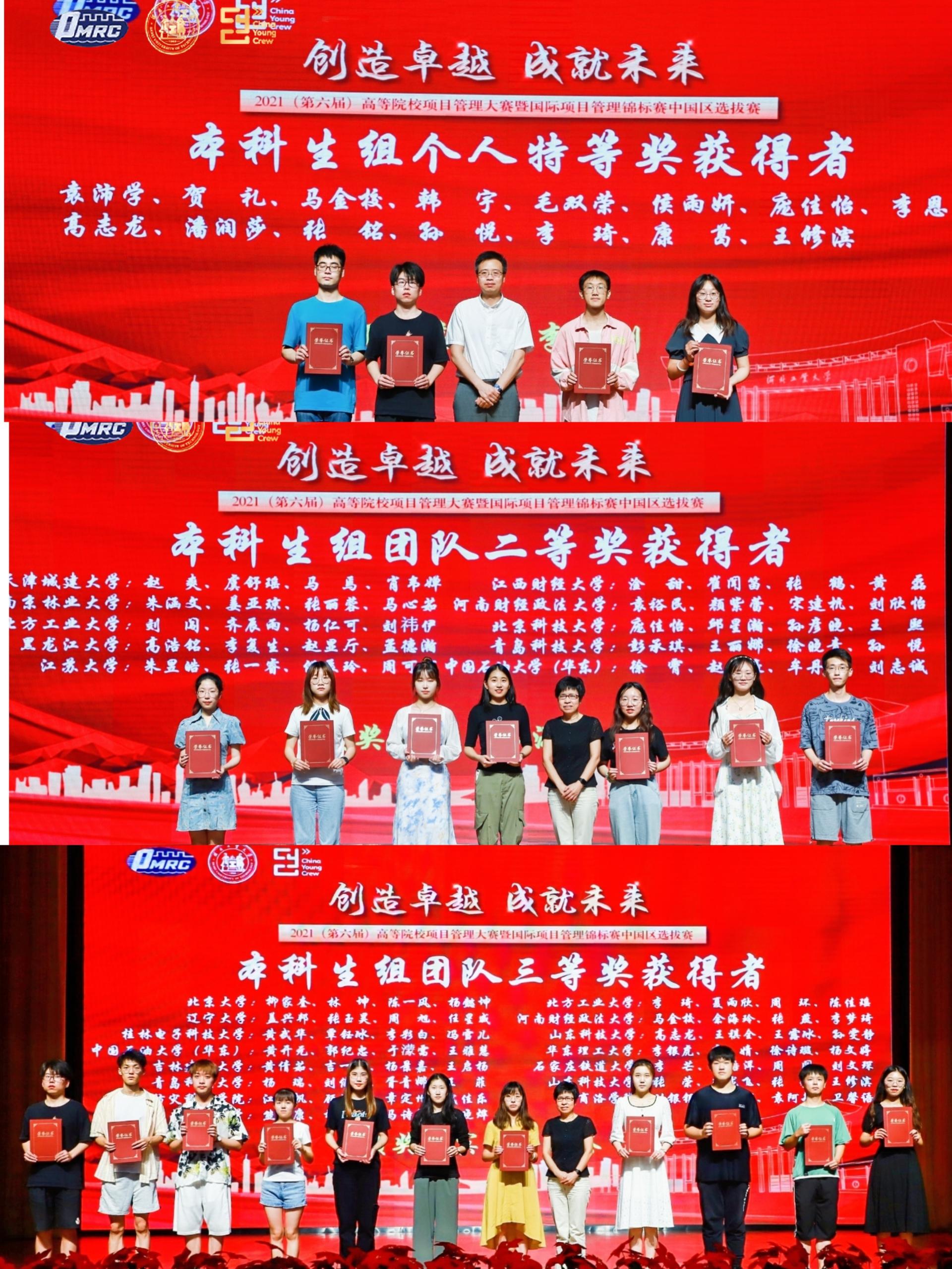 全国高等院校项目管理大赛是面向在校大学生的全国性项目管理学科竞赛,受到各院校的高度认可和重视。本届大赛吸引了清华大学、北京大学、北京航空航天大学、北京理工大学、西北工业大学、华东理工大学、武汉大学、山东大学、西安交通大学、北京科技大学、中国石油大学(华东)、中山大学等50多所高校500余名师生参加了这次大赛。德赢vwin体育官网登录选派的2支本科生队,由董华教授和黄天赐老师带领8名同学参加比赛。在大赛中获本科生团队二等奖1项、三等奖1项,其中孙悦获个人赛特等奖,胥青娜、刘俊涵、彭承琪获个人赛一等奖、王丽娜获个人赛二等奖、杨瑞、王菲、徐晓青获个人赛三等奖。