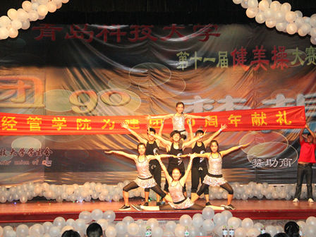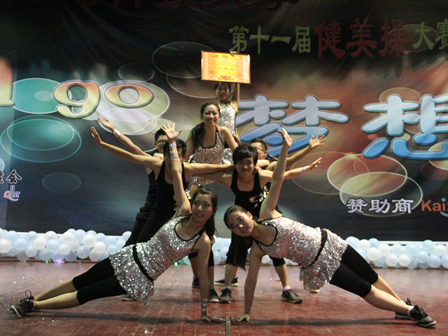 6月19日下午,为提高学生的身体心理、素质,丰富学生的的课余生活,由校学生会举办的“团go 90,青春飞扬”健美操大赛四方校区在西礼堂隆重举行,来自各学院的12支代表队参加了角逐。