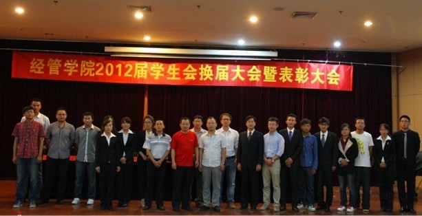 9月27日下午12点30分,“经管学院2012届学生会换届暨表彰大会”在第三报告厅隆重举行。出席大会的有经管学院党总支副书记张同雷老师及经管全体辅导员老师、后勤处王福军老师、校学生会主席李少龙,各学院学生会主席以及经管学院11届和12届学生会全体成员,会议由11届副秘书长王静主持。