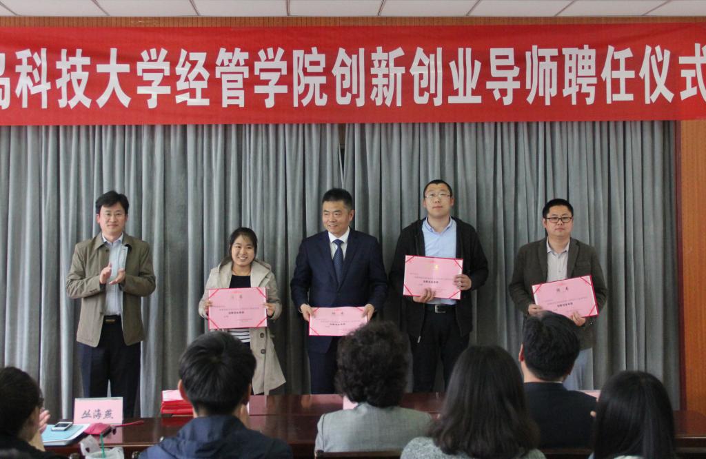 仪式上,经管学院院长王志宪宣读了《德赢vwin体育官网登录经管学院聘任创新创业导师的决定》,郑德前、王锋业为创新创业导师颁发了聘任证书。雷沃重工集团海外品牌传播部部长朱强代表创新创业导师发言。