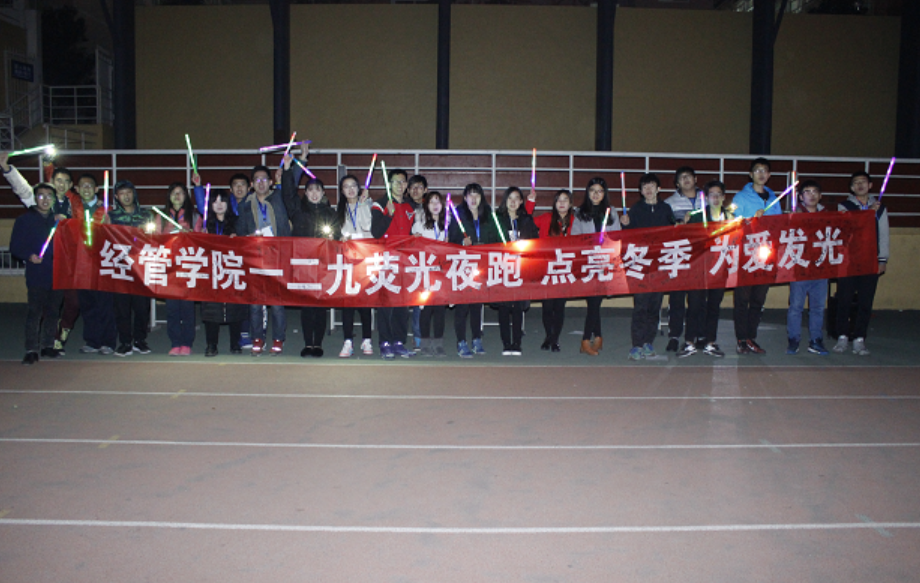 12月9日晚,为纪念“一二·九”运动81周年,经管学院在南苑操场举行荧光夜跑活动。此次活动吸引了三百余名经管学子参加,现场反响热烈,同学们情绪高涨。