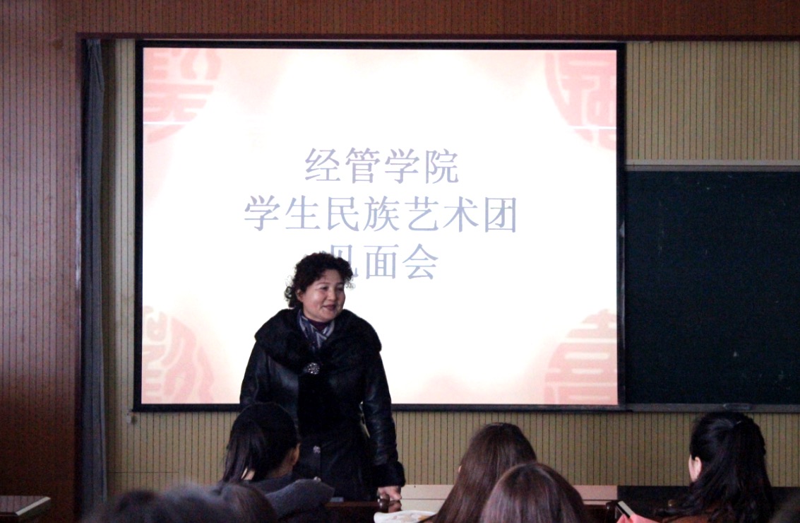 会议伊始,王聪老师指出,民族艺术团为大家提供了一个沟通、交流,信息资源共享的平台,既可以增强少数民族学生的归属感,又可以让大家走出班级,走出专业,结交朋友,充实大学生活。王聪老师希望大家能够充分发挥自己的歌舞才华,展示自我,传播民族文化。姑再努尔·阿不来提老师也对同学们提出了殷切期望,希望各民族同学团结友爱、相互了解,在展示个人才艺与民族风采的同时,为自己的青春留下浓墨重彩的一笔。见面会在温情的气氛中圆满结束。