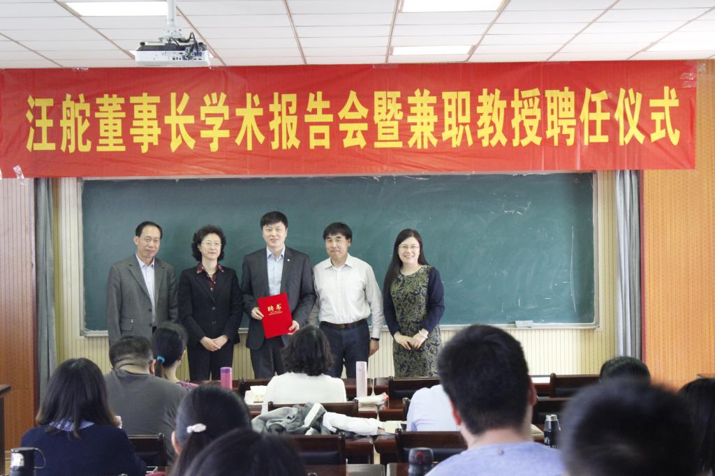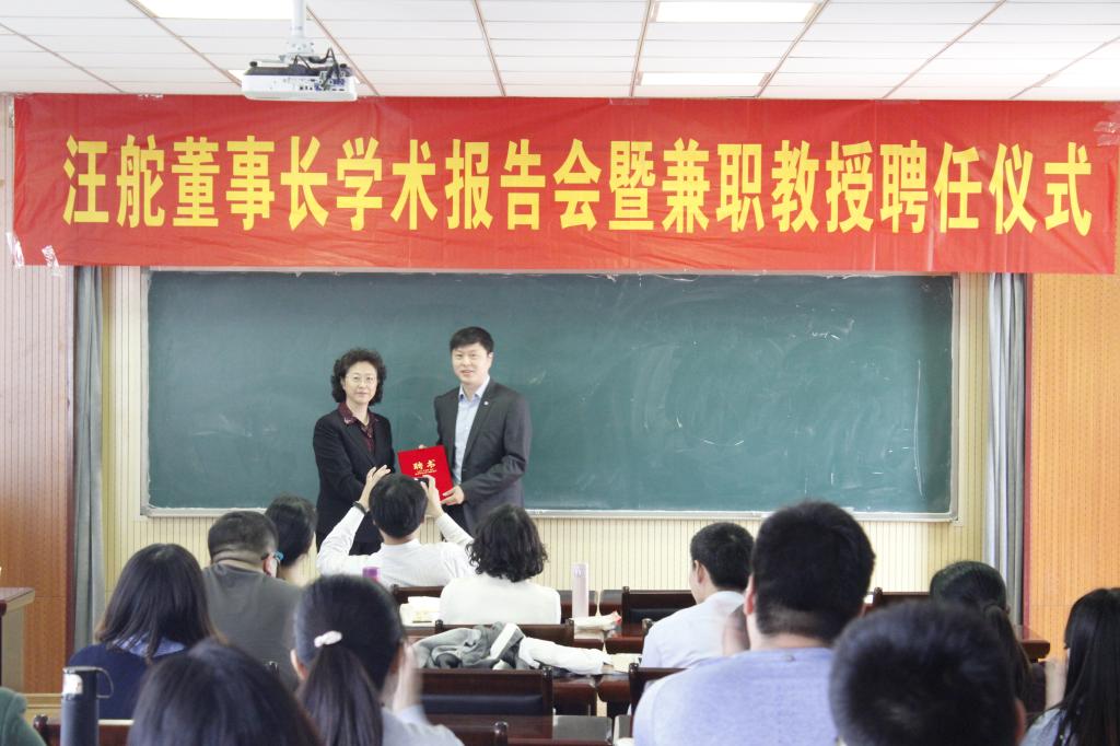 4月23日下午,汪舵董事长学术报告会暨兼职教授聘任仪式在经管楼505室举行。副校长张淑华出席仪式并为汪舵颁发聘书。仪式由经管学院院长王志宪主持,纪委副书记兼纪委办公室主任丛海燕、经管学院党总支书记聂法良、学院全体教师、其他文科学院教师代表、MBA学员及全体研究生参加了聘任仪式。