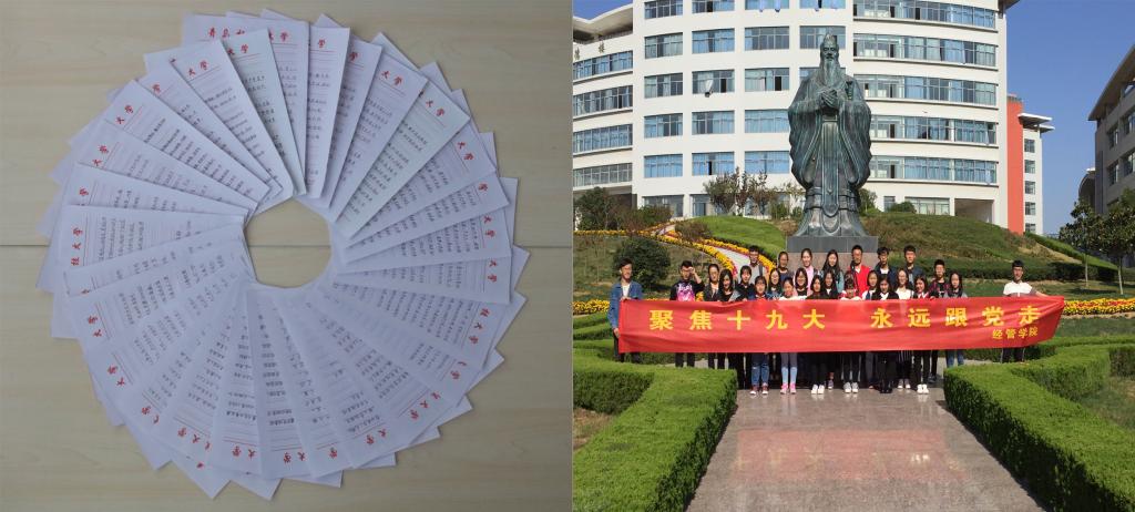 在党的十九大胜利召开之际,经管学院将线上宣传引导与线下活动开展相结合,通过座谈研讨、主题学习等多种形式使十九大精神“零时差”进入学院学生教育管理工作。