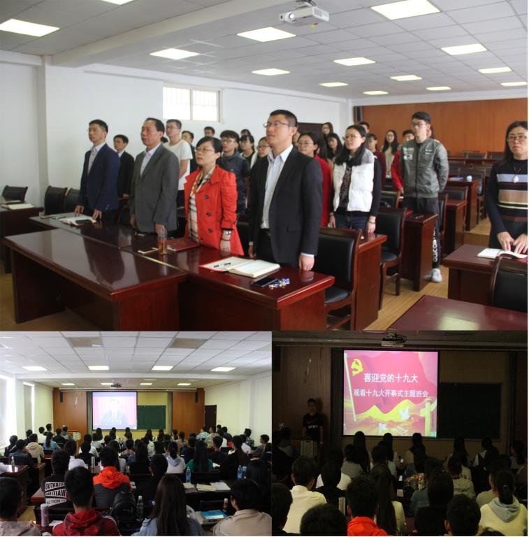 18日上午9时,经管学院领导班子成员、全体师生党员在学院419会议室共同观看了党的十九大开幕会的现场直播。同时,学院学生党员、学生干部以及广大青年学生自发组织,通过中央电视台等主流媒体收听收看了直播盛况。当晚,学院在弘毅楼E-106、504和505会议室召开十九大主题班会,组织2017级新生观看了党的十九大开幕会回放。观看过程中,同学们全神贯注,不时报以热烈的掌声。经过此次主题班会,同学们亲身体会到了党和国家的飞速发展,进一步坚定了为中国特色社会主义事业贡献光和热的信念。