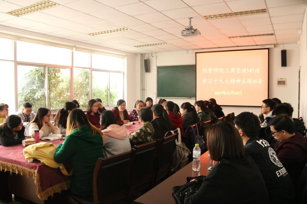 11月16日下午,经管学院副院长董华走进工商管理141班毕业生考研就业座谈会,围绕十九大报告提出的习近平新时代中国特色社会主义思想,与同学们共话大学生的就业与考研问题,畅谈大学生的理想与实践。