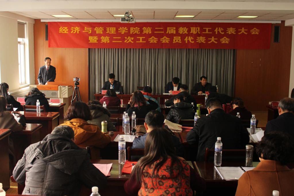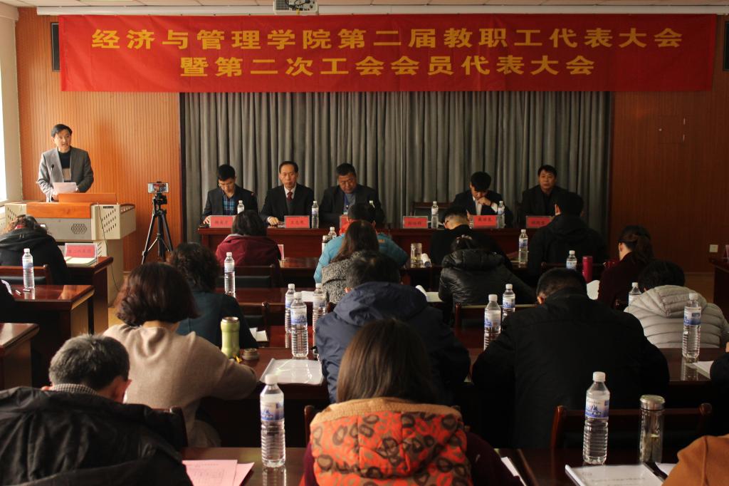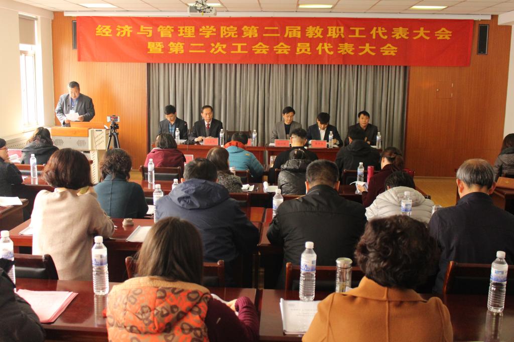 12月29日下午,经管学院第二届教职工代表大会曁第二次工会会员代表大会在崂山校区经管楼419会议室举行。校党委副书记张元利,校工会主席郭曰铎,经管学院党政负责人等出席大会。双代会代表39人参加了会议,大会由副院长杨友才主持。