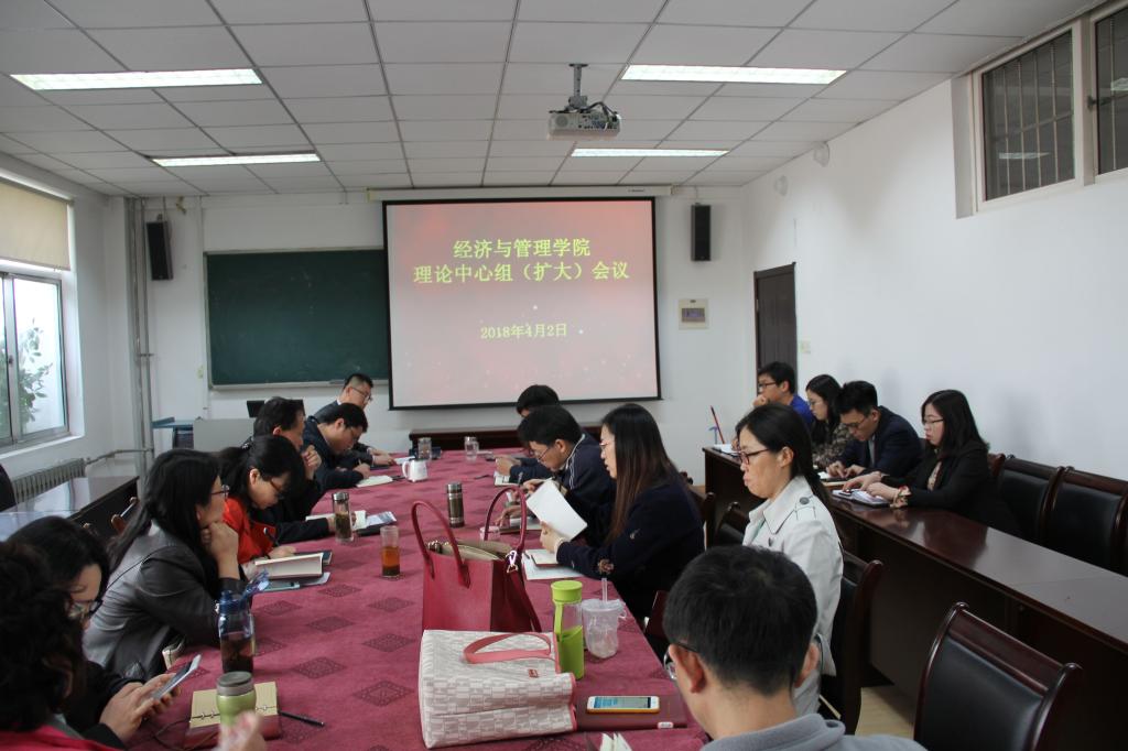 4月2日下午,经管学院在南区2号楼415室召开理论中心组(扩大)会议,学院总支委员、全体党支部书记、专职辅导员参加了会议,会议由学院党总支书记聂法良主持。