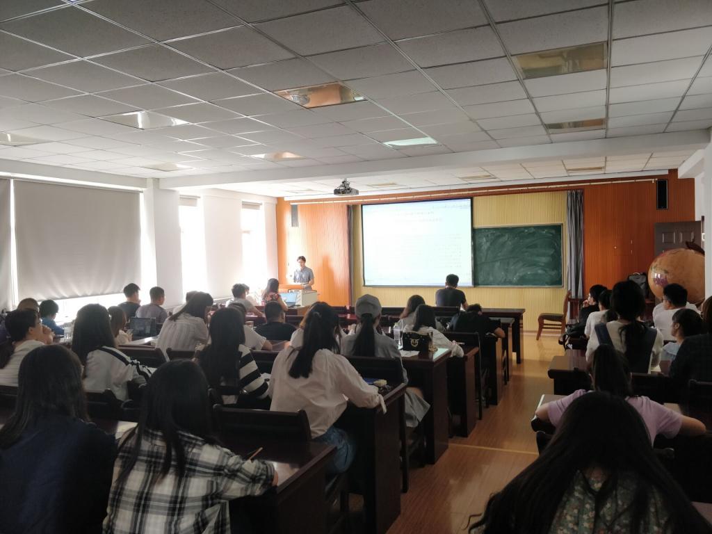随后,2016级研究生袁赛向在座师生汇报了题为《中国典型城市碳排放特征及峰值预测-基于“脱钩”分析与EKC假设再验证》的报告,该报告通过脱钩分析法、工具变量法等方法进行研究,分析了产业结构、城镇化、人口数量等因素对碳排放的影响。教师代表王裕锦和陈明老师对袁赛同学的研究成果表示了肯定,并提出了几点建议。