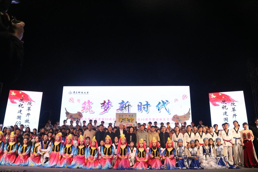 为庆祝中华人民共和国成立69周年,庆祝改革开放四十周年,10月12日晚,德赢vwin体育官网登录“筑梦新时代”迎新文艺晚会于崂山校区南苑操场隆重举行。晚会共分为三个篇章——改革路、新时代、青春志,经管学院选送的民族舞蹈《盛世欢腾》和说唱节目《青春志》亮相舞台,向全校师生展现了经管学子的青春风采。