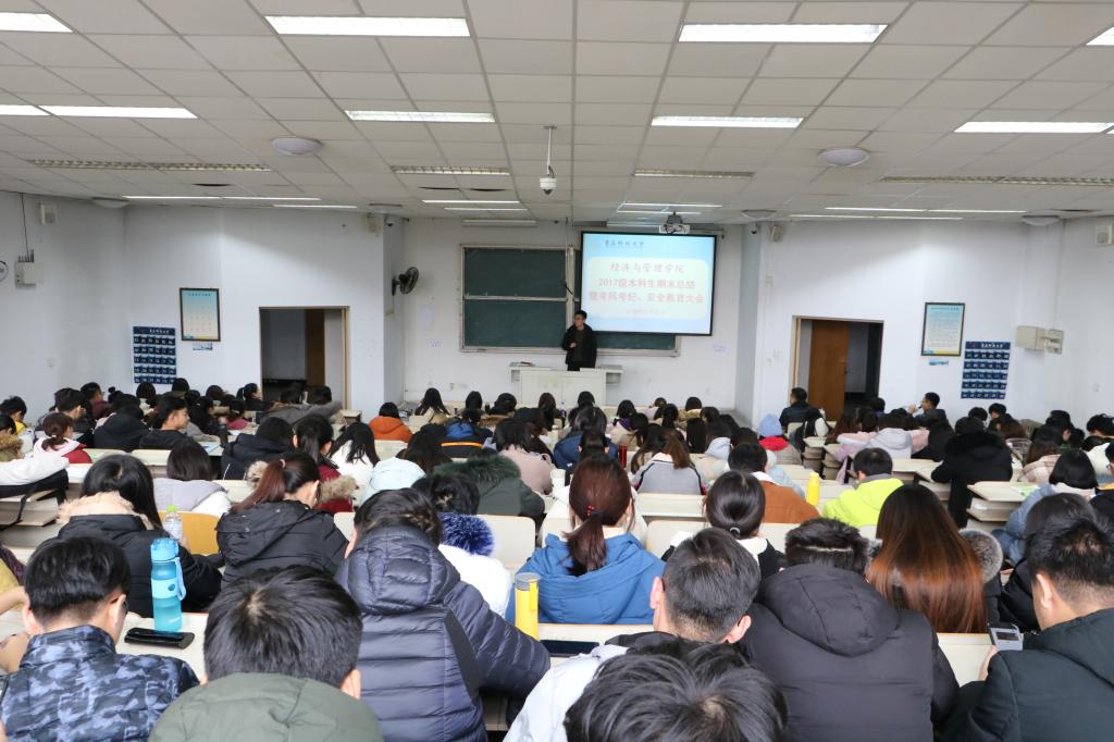 为严肃考风考纪、加强学生安全意识、总结本学期工作,12月25日下午,经管学院于弘毅楼E302室召开2017级本科生期末总结暨考风考纪、安全教育大会。会议由张显全老师主持,2017级全体本科生参加。