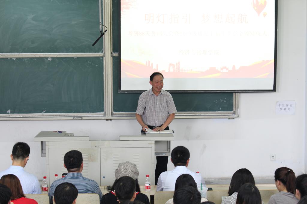为调动考研学子的积极性,增强迎考备战的信心,9月24日下午2点,经管学院于弘毅楼E302室召开“明灯指引 梦想起航”考研88天誓师大会暨2019级研究生新生奖学金颁奖仪式。校研究生院副院长徐立勋、经管学院院长王志宪、经管学院副院长杨友才、经管学院党总支副书记兼副院长刘跃宁莅临本次会议。