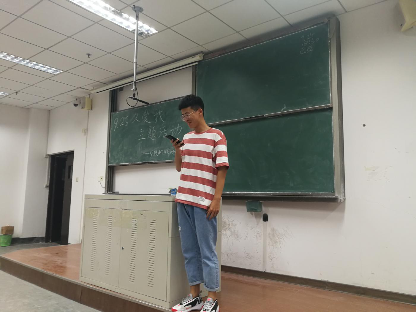 9月25日晚,2019级ACCA专业开展了“925 久爱我”主题活动。“青春同行,吐露心声”。同学们踊跃上台发言,向大家诉说自己亲身经历的或有所耳闻的关于心理健康方面的故事,同学们听完后感同身受,深受鼓舞。大家纷纷表示,大学阶段是人生中最重要的转型阶段,是形成人生观、世界观、价值观的关键时期,在这一节点,一定要积极面对生活的挑战,及时摆正心态,培养良好的心理素质,携手度过美好的青春年华。