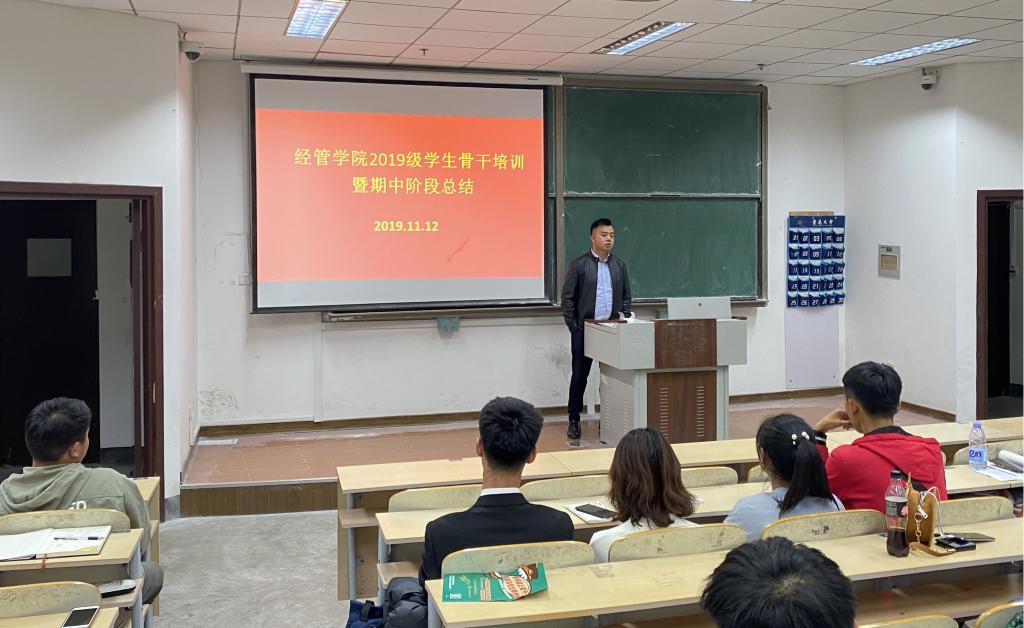 11月12日,经管学院在明德楼330召开2019级学生骨干培训暨期中阶段总结会,以提升学生干部政治素养,增强学生干部自主管理能力。2019级辅导员孙一君、初桂民、于潇华及主要学生干部参加此次会议。