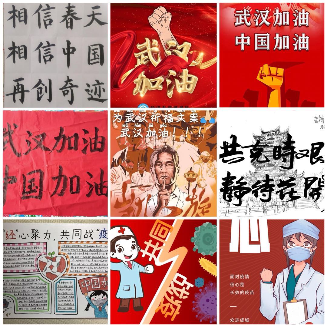经管学院开展“‘经’心聚力,共同战‘疫’”作品征集活动以来,经管学子积极响应并参与投稿,截止目前,学院共收到涵盖书法、绘画、视频、海报设计、手抄报创作等艺术形式的艺术作品128件。其中,财务192班宋首霖的楷体书法,书写苍劲有力,内容激扬斗志,以方正之势彰显了“翰墨传祝福,同心战疫情”的决心;国贸192班张书榕在海报中绘出了共援武汉的希望之手,以海报的形式表达了中国人民万众一心、共克疫情的坚定信念;国贸171班王熙媛将医护人员和新型冠状病毒绘以卡通人物形象,以手抄报的形式在普及防疫知识的同时,表达了中国人民战胜疫情的决心。