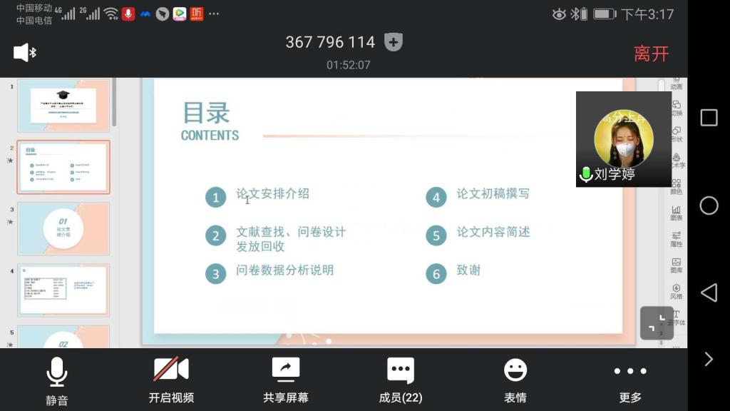 根据经管学院2020届本科毕业生答辩进度计划,学院本科生毕业论文中期检查报告会于4月28日下午顺利进行。受新冠疫情影响,学校推迟开学,学院各专业提前组织计划,克服重重困难,对550余名2020届毕业生开展了线上毕业论文中期检查。学院7个本科专业共分成23个检查小组,各专业本科生导师以及全体毕业生通过腾讯会议等网络平台在线参加了毕业论文中期检查报告会。