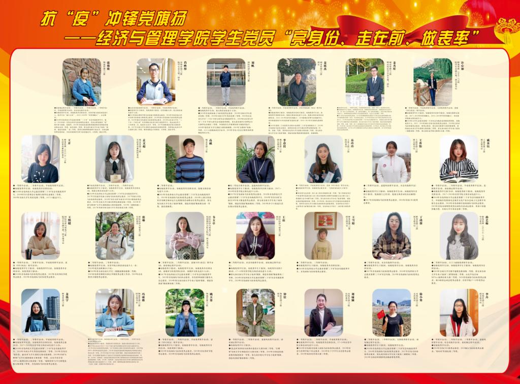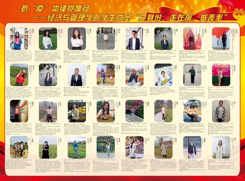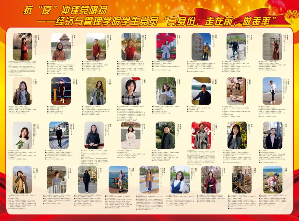 为引领学生党员高擎党旗,筑牢堡垒,理性思考,勇于担当,做具有责任意识的宣传员,有奉献精神的示范员,带头贴心服务的联络员,充分发挥先锋模范作用,坚决打赢疫情防控阻击战,经管学院于3月份组织举办“抗‘疫’冲锋党旗扬——经管学院党员‘亮身份、走在前、做表率’主题活动”,现将活动成效展示如下: