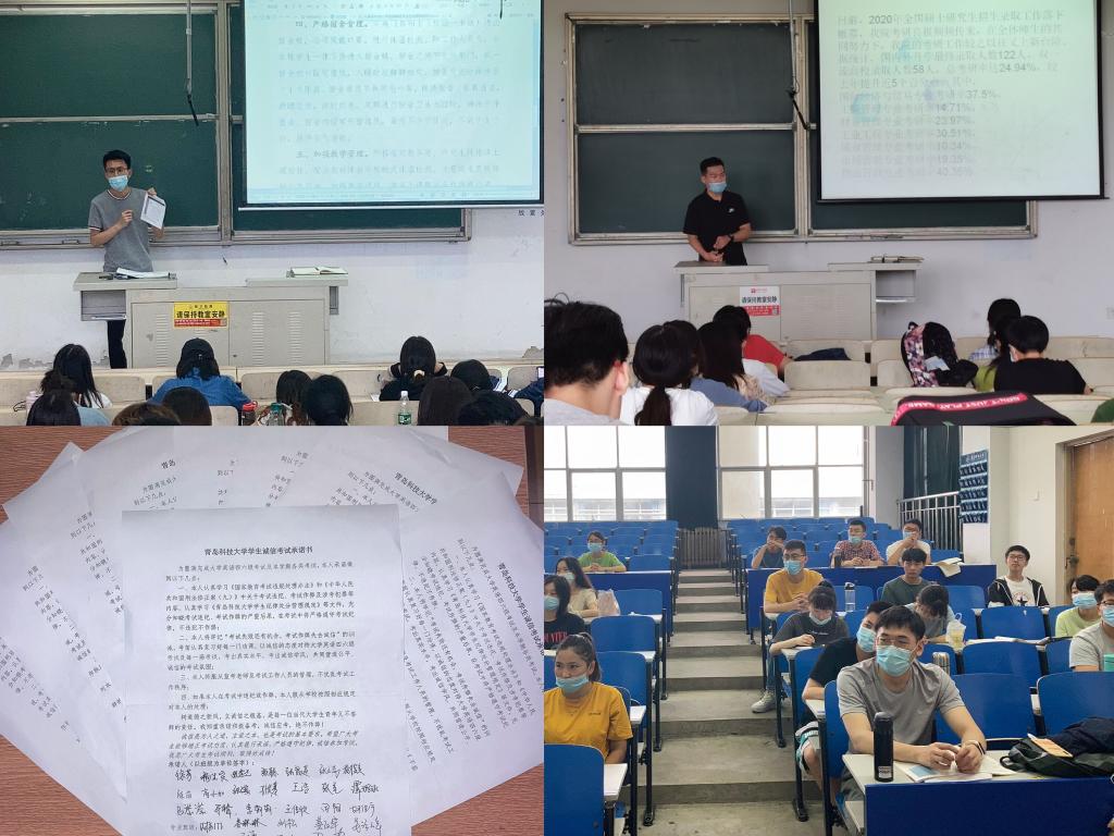 根据常态化疫情防控特殊时期的教学方式、考试形式的新变化,按照《关于做好2020年春季学期考风考纪教育工作的通知》的具体要求,张显全结合往年考试违纪的典型案例,告诫同学们在考试中要严格遵守考场规则,虽然学习形式考试方式会变,但是诚信考试的行为规范永远不会变,要用诚信之心敬畏纪律,敬畏考试,切勿违纪作弊。同时,号召全体同学要倍加珍惜来之不易的战“疫”成果,尽快调整学习状态,努力学习专业知识,以饱满的精气神投入到今后的学习生活中。随后,全体同学认真学习了《德赢vwin体育官网登录学生纪律处分管理规定》等规章制度中有关组织作弊、替考、考试作弊等违纪处分相关规定,并现场签署了《德赢vwin体育官网登录诚信考试承诺书》。