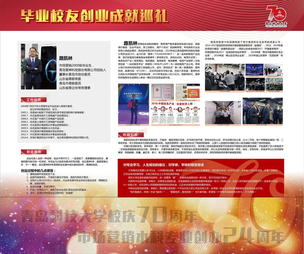 市场营销专业是一个与创业创新活动联系最为密切的应用实践性学科,其培养目标中最为重要的一点就是培养具有创业创新理念意识和技能的经营人才。展览内容丰富充实,既有毕业伊始职业生涯初期的莽撞探索,也有创业萌芽时期的筚路蓝缕、披荆斩棘;既有取得成功的喜悦欣慰,也有对决策失败的反思启迪;既有对昔日同窗的温馨回忆,也有对师长校风的感恩感悟和对学弟学妹的贴心寄语;既有对产业发展的真知灼见,也有对管理堂奥的认知解读。展览意在激发同学们的技能导向学习热情,传播开拓进取的企业家精神和持之以恒、一丝不苟的工匠精神。展示内容如下: