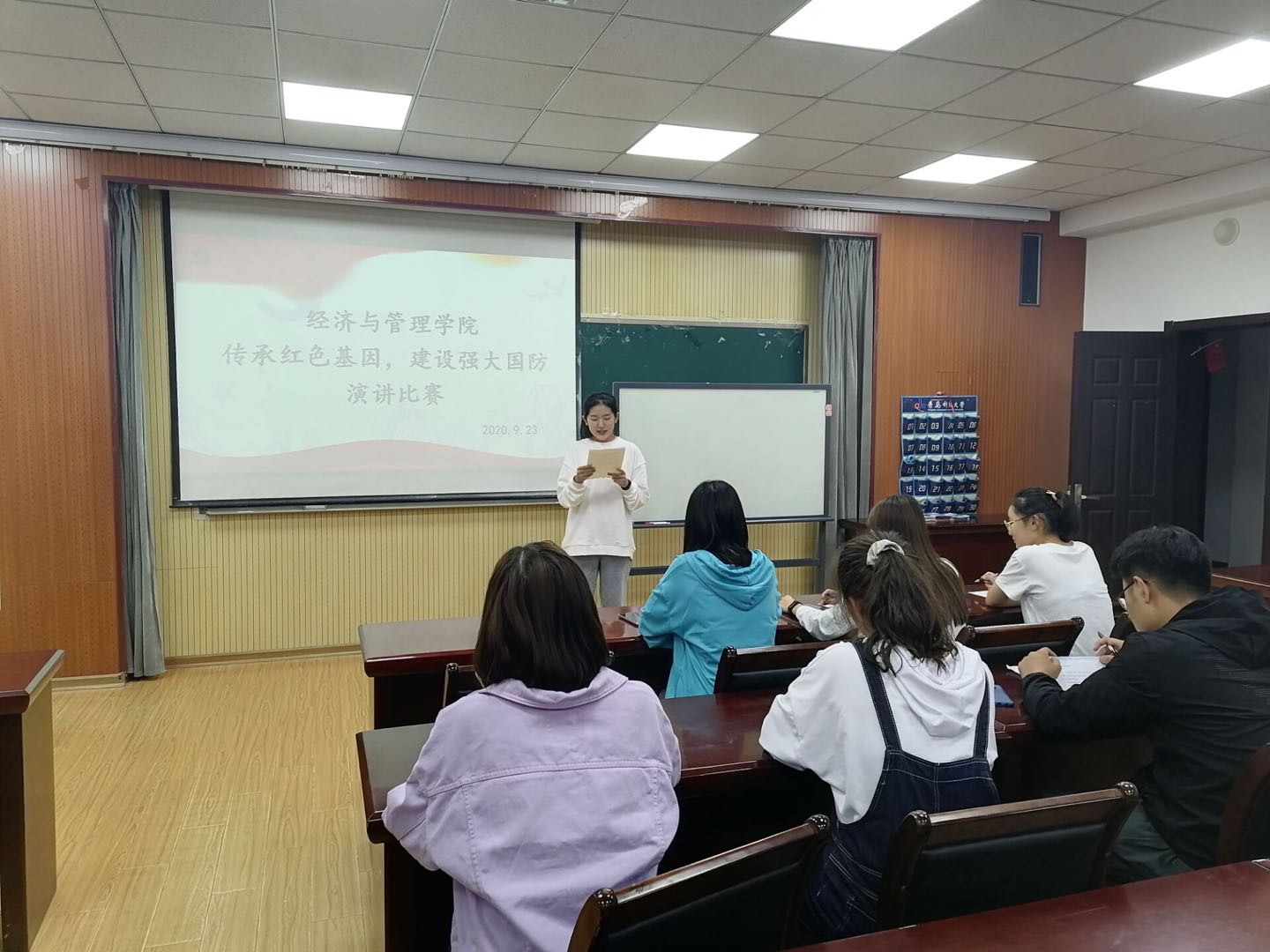 为加强全民国防教育,激发大学生崇尚英雄、敬重军人、关心国防的热情,弘扬爱国主义精神,传承红色基因血脉,9月23日,经管学院于经管楼419室顺利举办“传承红色基因,建设强大国防”主题演讲比赛。