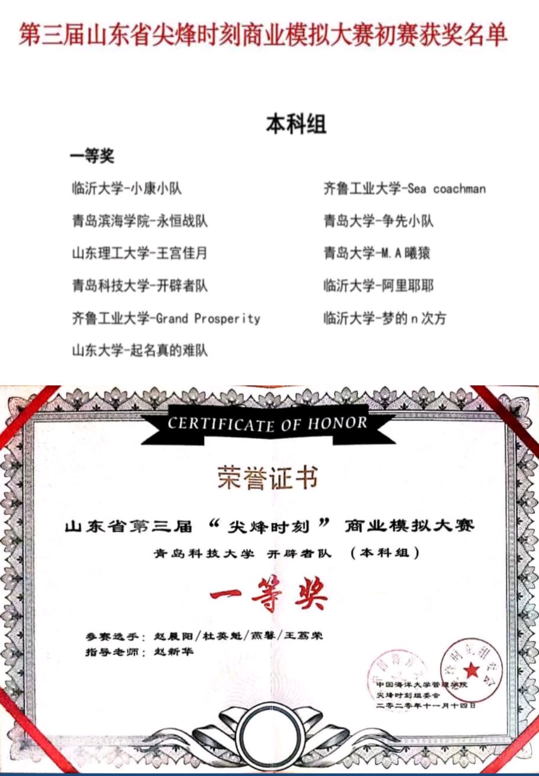 近日,山东省第三届“尖烽时刻”商业模拟大赛圆满结束,德赢vwin体育官网登录经管学院“开辟者队”在初赛中斩获本科组一等奖,成功晋级决赛,并取得优异成绩。