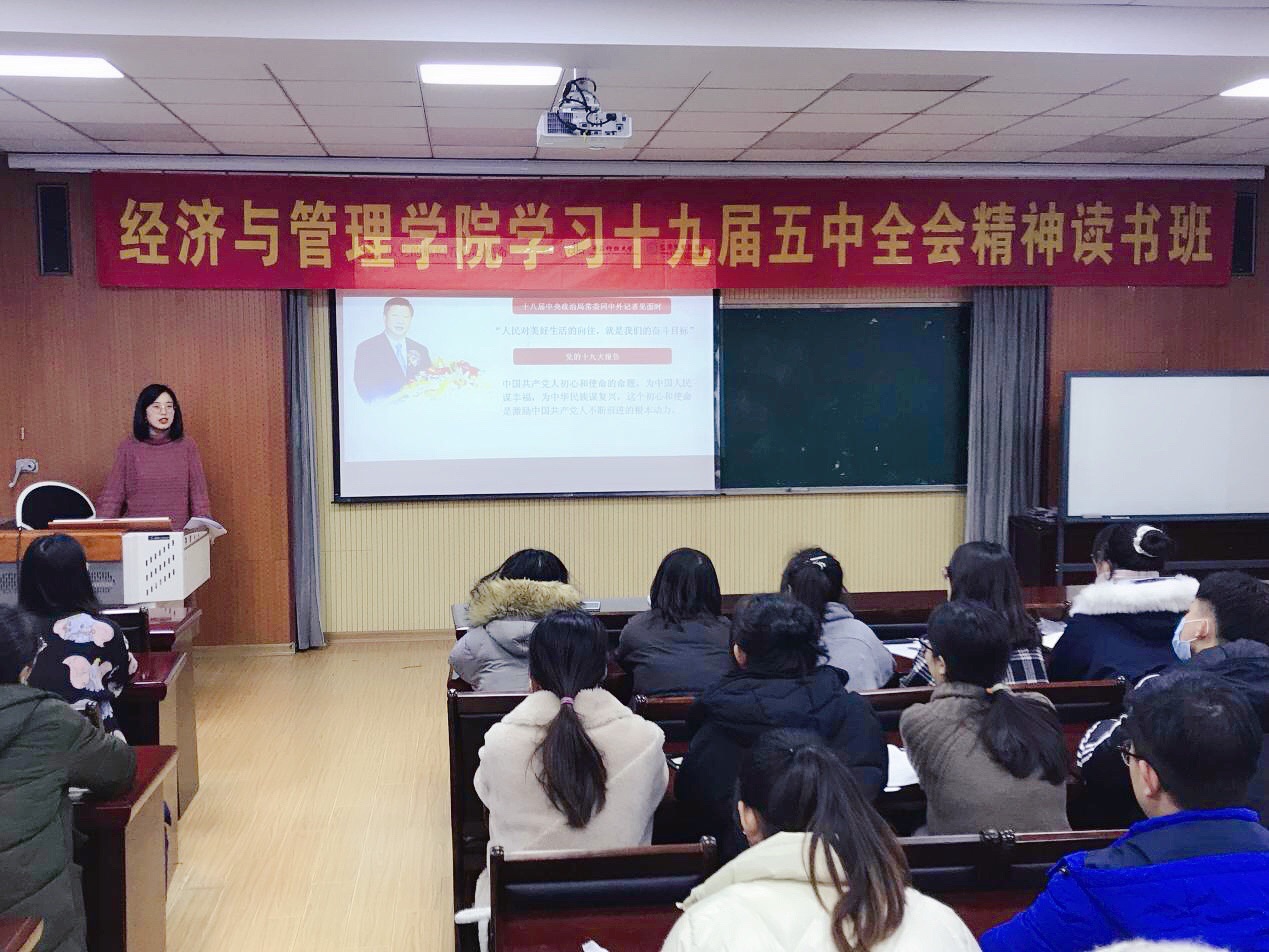 为进一步深入学习宣传贯彻党的十九届五中全会精神,12月4日,经管学院于经管楼419室组织“凝聚思想共识,激发奋进力量”十九届五中全会精神读书班第四期集中学习,经管学院分团委老师王聪作了题为“习近平总书记关于全面深化改革重要论述”微党课,并就“厚植信仰”问题与学生党员及学生骨干展开探讨。